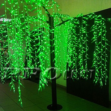 Cветодиодное освещение " дерево ИВА", черный ствол, 2.5м(H), 24V, с зелеными листьями, 1664 LED, с понижающим трансформатором, веток-4 , мощность 160W. УЛИЧНОЕ