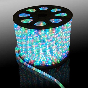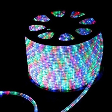 Дюралайт светодиодный (полый )220V 2-жил/10мм 30led/m-круглый ,бухта 100m.,алюминиев.провод ,кратность резки 2м (гарантия-3мес) цвет:RGB продажа кратно бухте (100м)